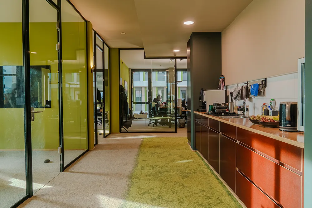 Zu den zahlreichen kulinarischen Möglichkeiten in der Nähe bieten wir eine wechselnde Auswahl an Mahlzeiten, die ins Büro geliefert werden, sowie jeden Montag kostenloses Mittagsessen auf's Haus.